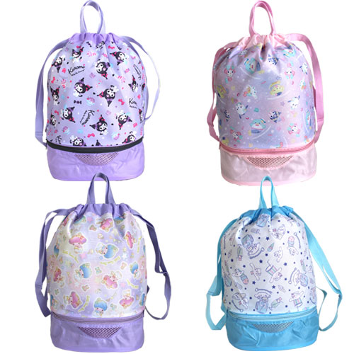 プールバッグ サンリオ 2層式 ナップサック リュック クロミ シナモロール 女の子 ビーチバッグ 子供 おしゃれ ビニールバッグ プール 水泳 スイミング 海水浴