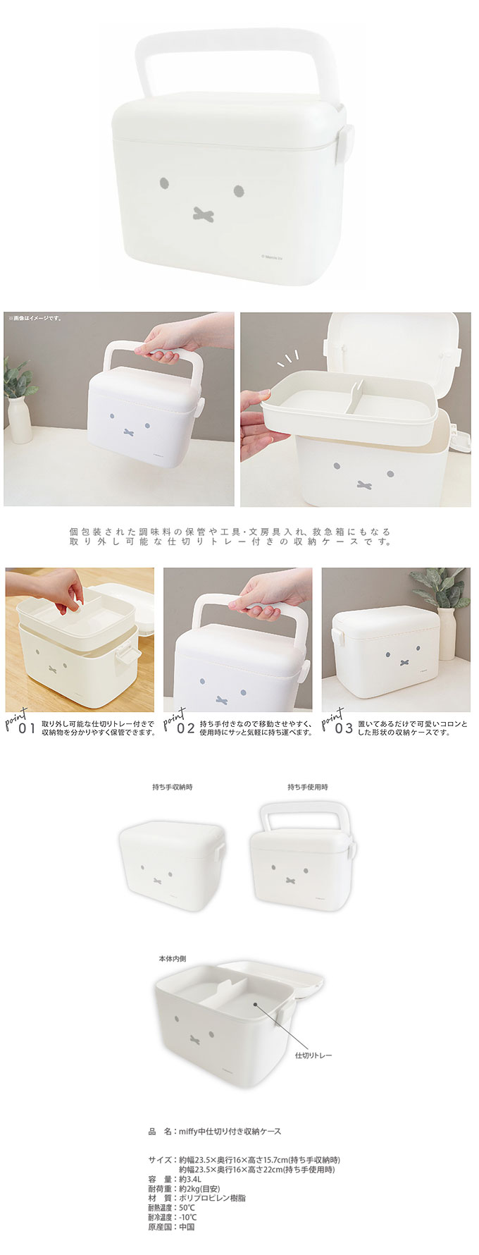 仕切り付き収納ボックス ミッフィーmiffy 持ち手付収納ケース 救急箱 裁縫箱 小物収納 インテリア