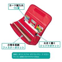 何が入っているか見えやすいガバっとひらくジャバラ式、取り出しやすいファスナーポケット、カード入れ15室もある使いやすさに加え、かさばりにくいスリムタイプ