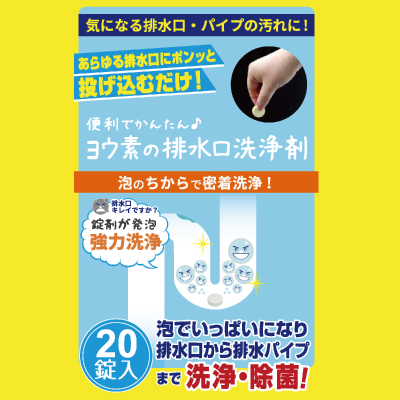 ヨウ素の排水口洗浄剤 20錠 排水溝 排水パイプ 掃除 洗浄 除菌