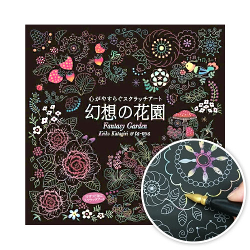 心がやすらぐスクラッチアート ペン付き 幻想の花園 片桐慶子 ta-nya 大人の塗り絵