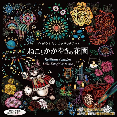 心がやすらぐスクラッチアート ペン付き ねことかがやきの花園 片桐慶子、ta-nya 大人の塗り絵 ホログラム仕様2枚入り 塗り絵セット