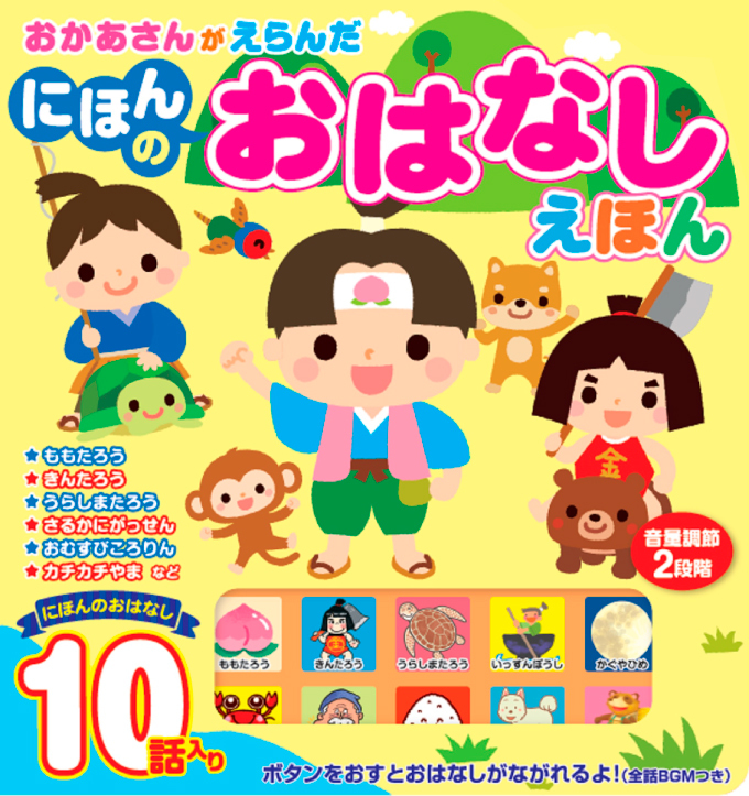 お子様に大人気の日本の童話を10話収録し、ボタンを押すだけで童話をお楽しみ頂けます。