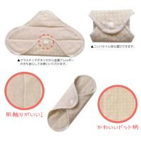 オーガニックコットン使用なので肌にやさしく、プラスチックボタン付きで取り付け簡単。
