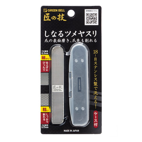 匠の技 ステンレス製しなる爪やすり ツメヤスリ 爪磨き 爪研き ネイルケア 専用ケース付き 日本製 グリーンベル