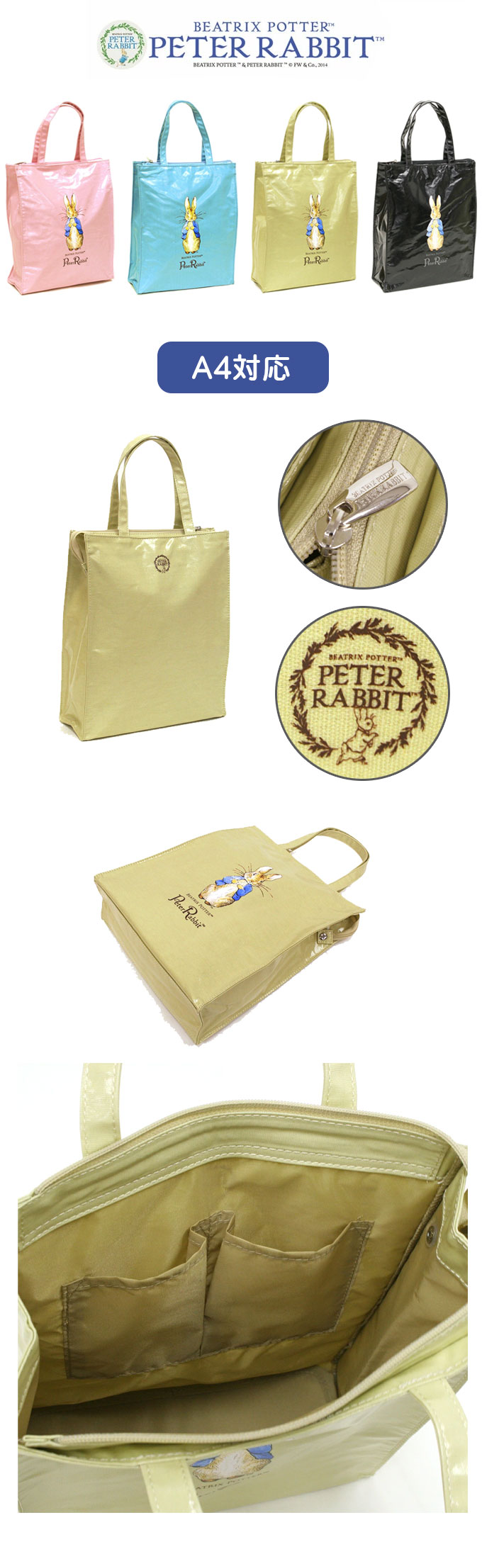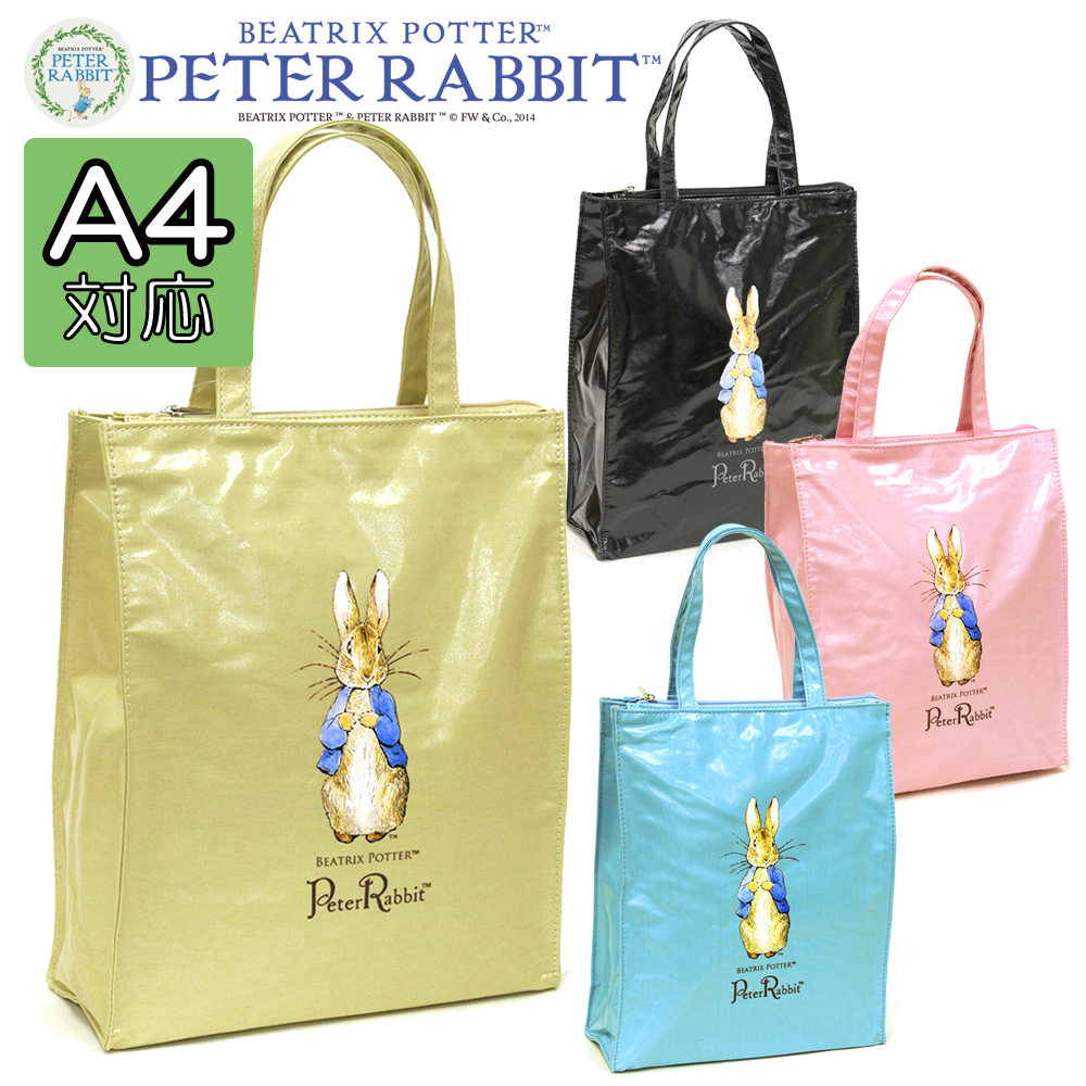 ピーターラビット 撥水ハンドバッグ A4対応 サブバッグ マチつき 上部ファスナー ショッピングバッグ レディース ビニールコーティング 撥水 軽量