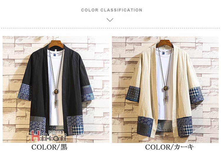 羽織 メンズ 甚平風 ジャケット 浴衣 カーディガン 切替 薄手 夏 サマー 七分袖 和服風 おしゃれ 父の日