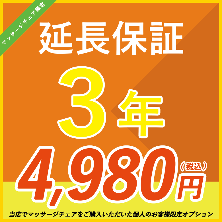 当店でフジ医療器製のマッサージチェアをご購入いただいたお客様限定でオプションとして3年延長保証を追加購入いただけます。