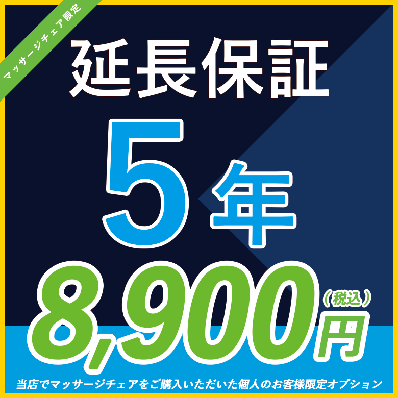 当店でフジ医療器製のマッサージチェアをご購入いただいたお客様限定でオプションとして5年延長保証を追加購入いただけます。