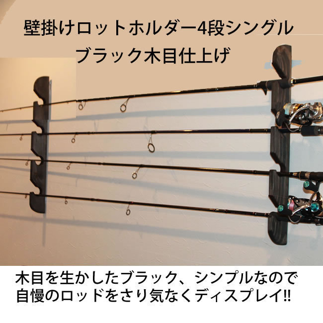 【4色から選べる】壁掛け4本用天然木ロッドホルダー・シングルタイプ【通常ねじ取付タイプ】