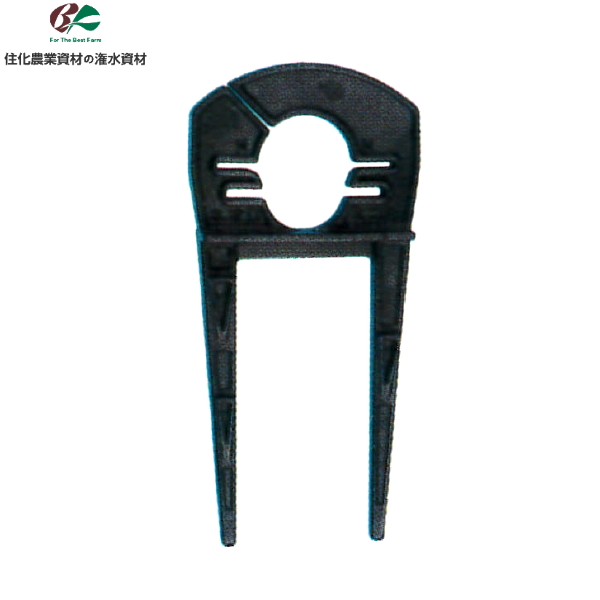 | 特長 | 地面に突き刺すだけで簡単に設置できます。 潅水チューブをしっかり固定し散水を安定させます。 ペグ部を2本にして、より安定性を持たせました。 中央部の切込み上段はスミサンスイMシリーズ用、切込み下段はネオドリップ、ミニA用と なります。 |