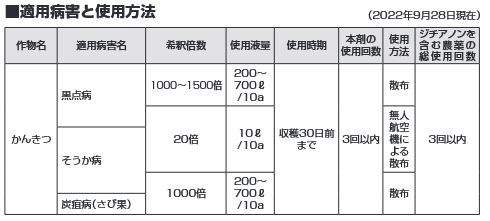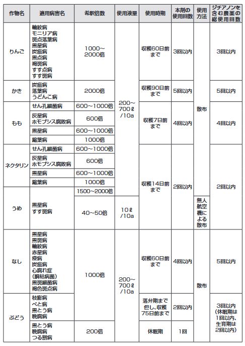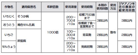 ●みかんのそうか病やなしの黒星病などに優れた予防効果を示す。