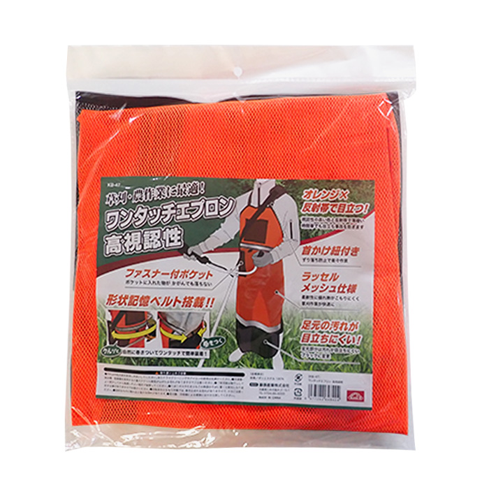 セフティ−3 ワンタッチメッシュエプロン KB-47 高視認性 草刈 農作業 刈払作業