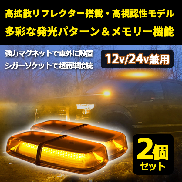 LED 回転灯 黄色 12V/24V 2個 セット パトランプ フラッシュライト 高照度SMD5730 72連 警備 多重発光 車両 サイン灯 省エネ 船舶 除雪車 防犯 パトロール