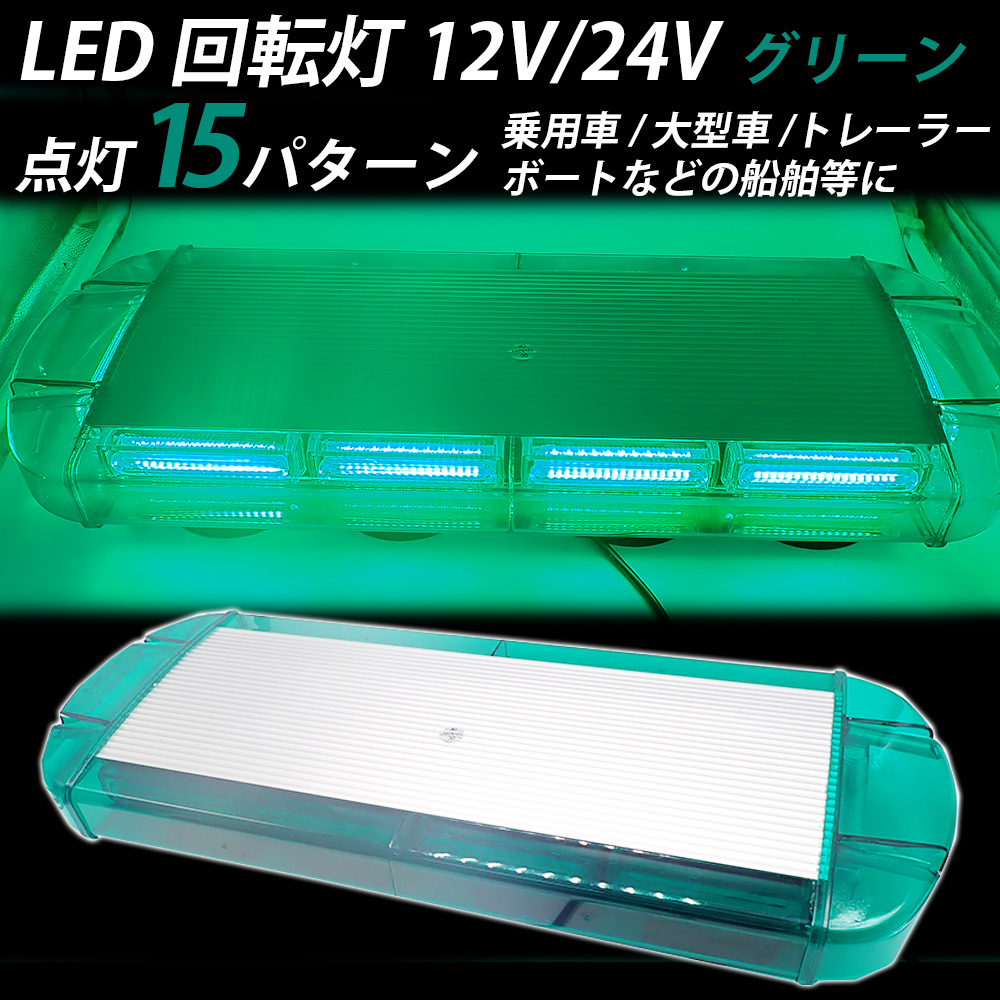 LED 回転灯 緑 パトランプ 12V/24 フラッシュビーコン 強力マグネット 点灯15パターン シガーソケット 防犯 グリーン 警告灯 作業灯 船舶 車