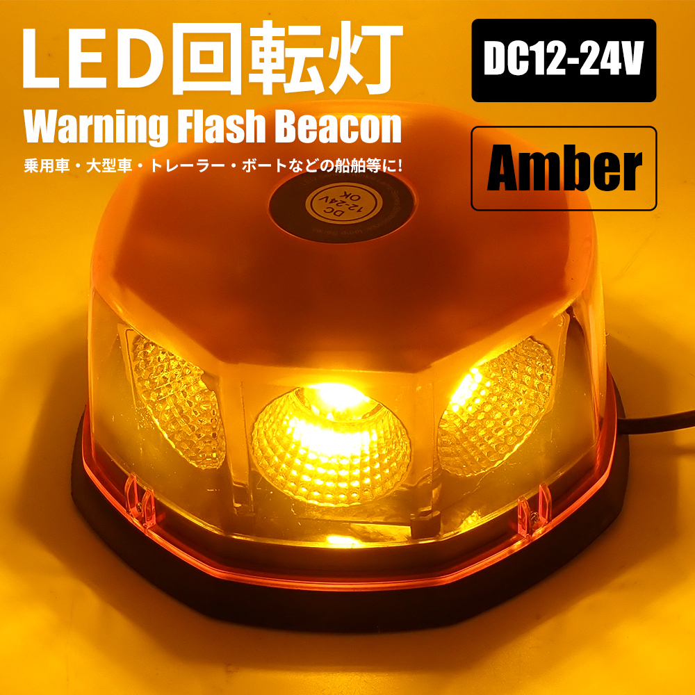 LED 回転灯 黄色 パトランプ 12V/24V アンバー 非常灯 パトロール トレーラー 船舶 フラッシュビーコン シガーソケット電源 防犯 強力マグネット