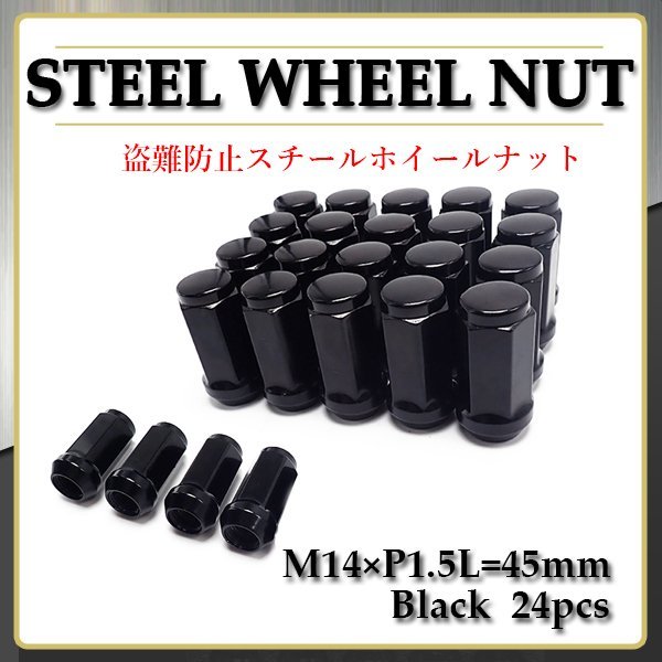 ホイールナット スチール ロング ナット 袋 24個 M14 1.5 19HEX ブラック エスカレード サバーバン タホ ユーコン キャデラック シボレー