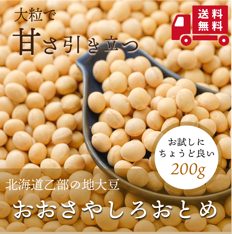 【送料込み】大莢白乙女 200g 1個 令和6年度産 北海道産 白大豆 地大豆 国産 乙部町産 おおさやしろおとめ 大豆 豆 大粒 甘い 原種 無添加 希少
