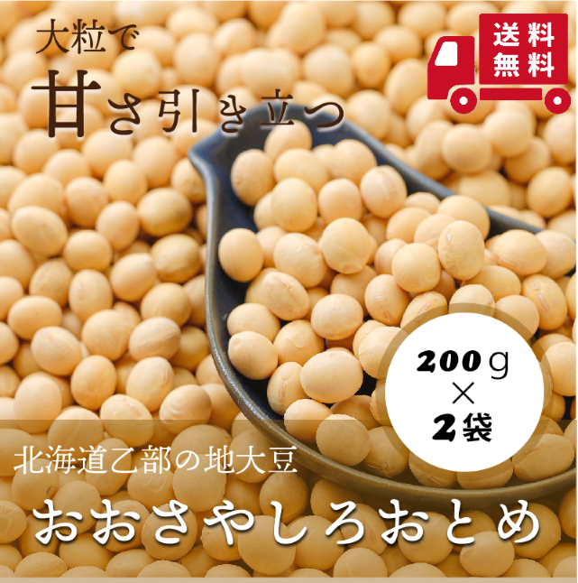 【送料込み】大莢白乙女 200g 2個 令和6年度産 北海道産 白大豆 地大豆 国産 乙部町産 おおさやしろおとめ 大豆 豆 大粒 甘い 原種 無添加 希少