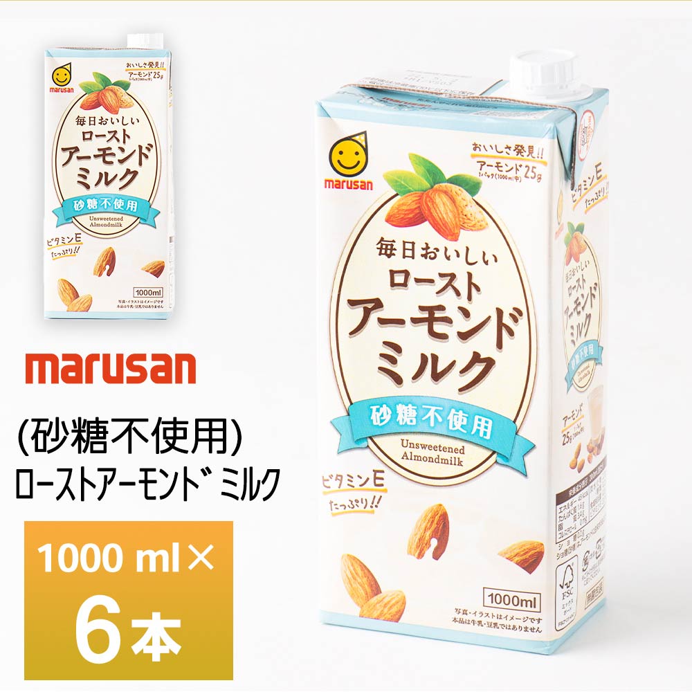 マルサン 毎日おいしいローストアーモンドミルク 砂糖不使用 1000ml ×6本 1L 紙パック 常温保存 植物性ミルク 箱買い まとめ買い