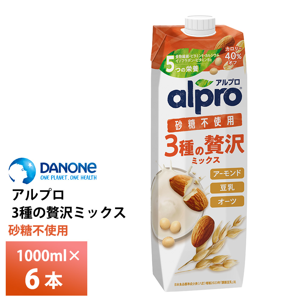 ダノンジャパン アルプロ 3種の贅沢ミックス砂糖不使用1000ml×6本 アーモンドミルク 豆乳 オーツミルク 紙パック 常温保存 飲む食物繊維 alpro 1L