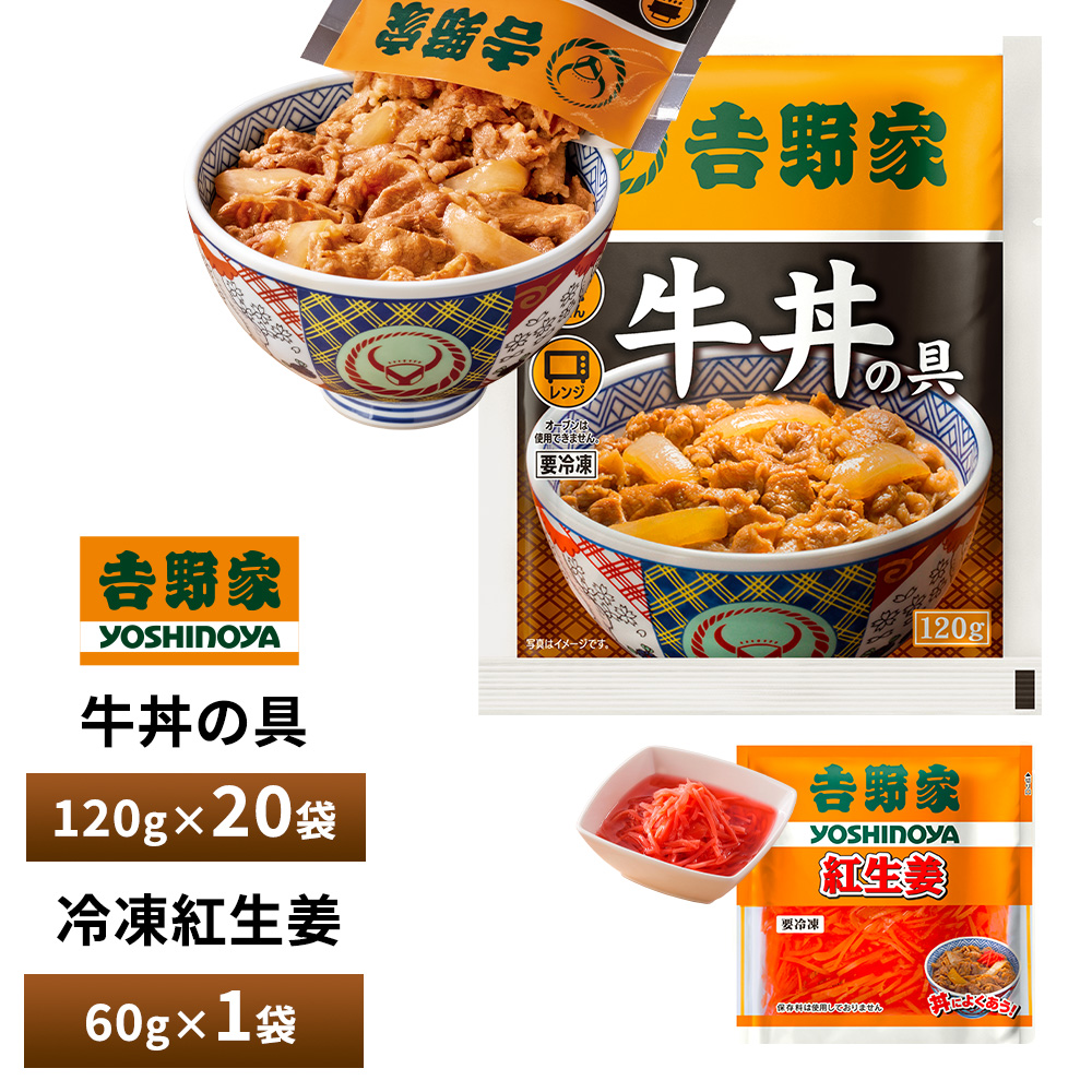 吉野家 牛丼の具 並盛 120g【20食詰合せ+紅生姜1袋】 送料無料 冷凍