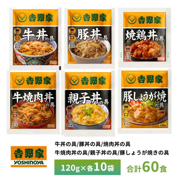吉野家 牛丼・豚丼・焼鶏丼・牛焼肉丼・親子丼・豚しょうが焼【各10食詰合せ】 送料無料 冷凍