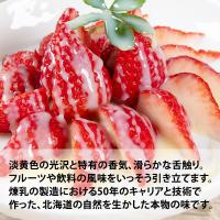 北海道産のてん菜糖のみを原料にし、長年の煉乳製造における技術とキャリアを活かし、作り上げたコンデンスミルクです。中身が見え、使いやすい小容量タイプのボトル入り。かき氷やイチゴにかけて、またお菓子作りや、コーヒーや紅茶に混ぜて等様々な用途に幅広くお使いいただけます。