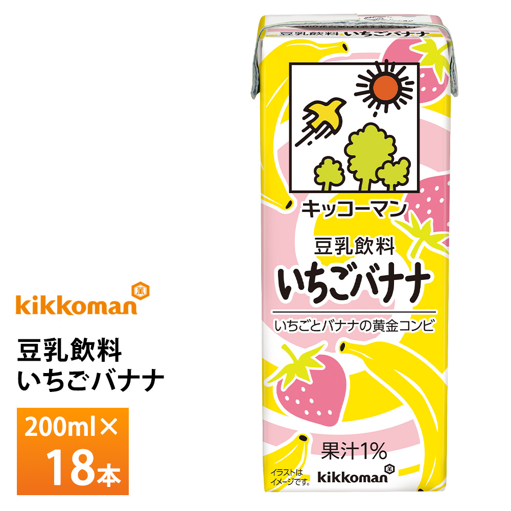 キッコーマン 豆乳飲料 いちごバナナ 200ml×18本 おやつ 健康飲料 植物性たんぱく飲料 紙パック 常温保存 ローリングストック 備蓄 ドリンク