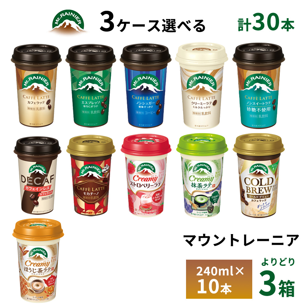 3ケースえらべる 森永 マウントレーニア 240ml を3箱 合計30本、お好きなものをお選びいただけます!