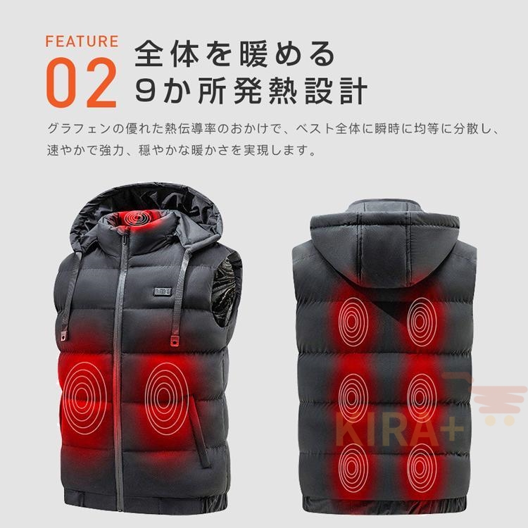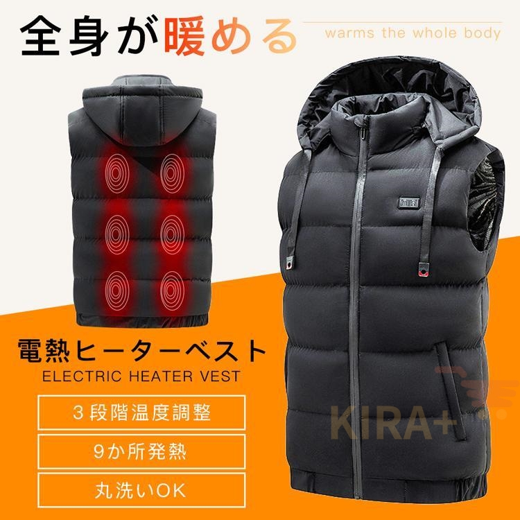 電熱ベスト バッテリー給電 電熱ジャケット 3段階温度調整 9か所発熱 速暖 防寒着 ヒーター付き 洗える 加熱パネル 冬 男女兼用 2025