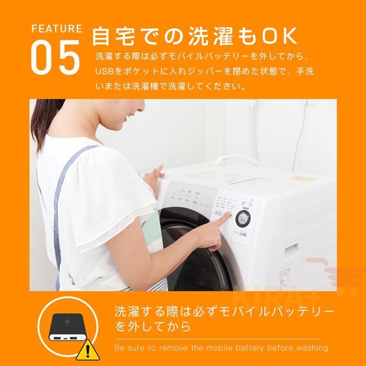 電熱ベストのバッテリーを取り出して、余熱がない状況で手で洗えます。強力に揉んでただいては行けません。自然乾かした後、使用することができます。清潔簡単でいつでも綺麗に保ちます。