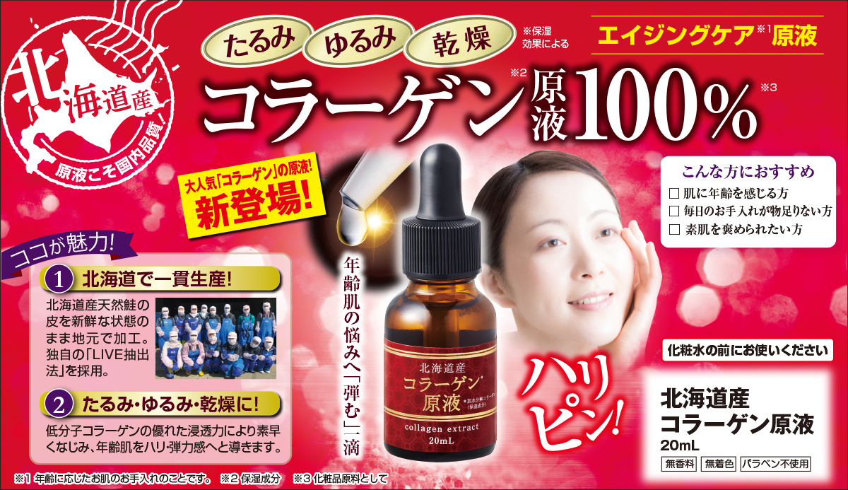 【公式】 北海道産コラーゲン原液 20mL 美容液 コラーゲン 原液美容液 コラーゲン化粧品 コラーゲン原液 原液化粧品 ハリ 保湿 スキンケア 基礎化粧品
