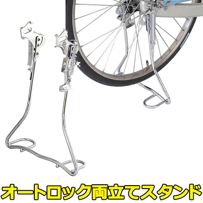 店内検索キーワード:自転車 パーツ スタンド 両立 クロムメッキ アシスト オートロック 両立スタンド ソフトロック 24インチ 26インチ 27インチ 送料無料
