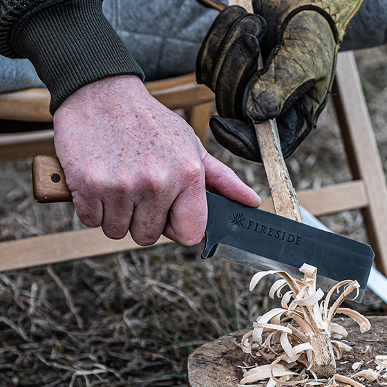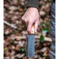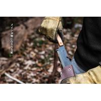 刃の形状は両刃仕様となっており、焚き付け用の薪割作業や細工、フェザースティック、バトニングに重宝します。