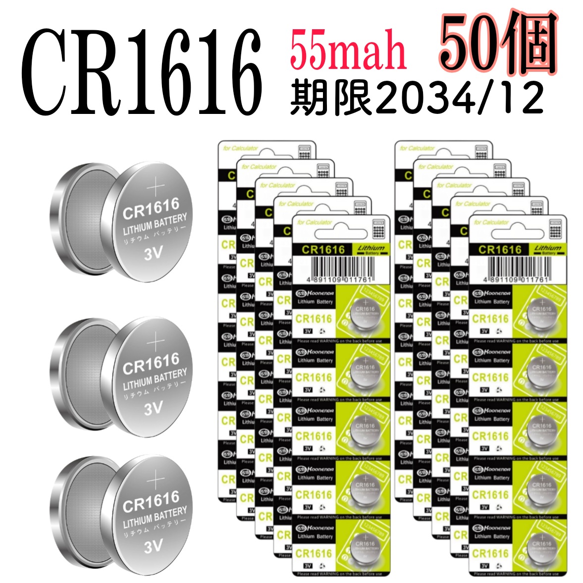 ボタン電池 CR1616 【50個セット】【3V 55mah 】 期限2034/12リチウムコイン電池 当店の電池はすべて容量偽装なしの商品です
