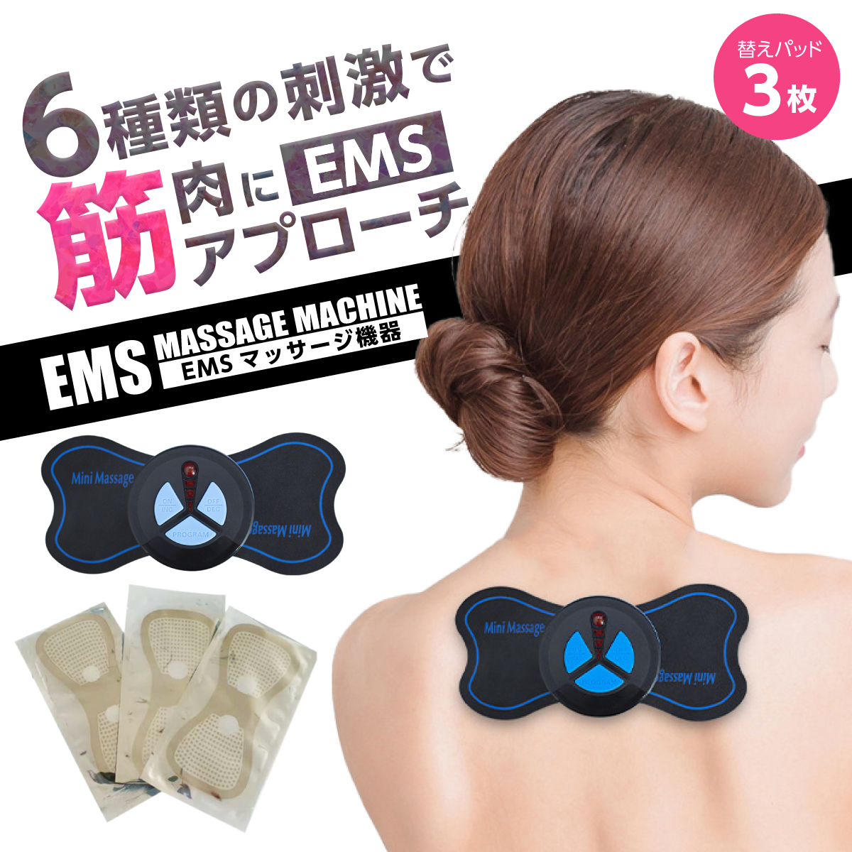 本体1+パッド3 EMSネックリラックスパッド 6モードもみほぐし コンパクトケア ポータブル 家庭用 小型 交換パッド付き 蝶型 筋トレサポート EMS腹筋ベルト