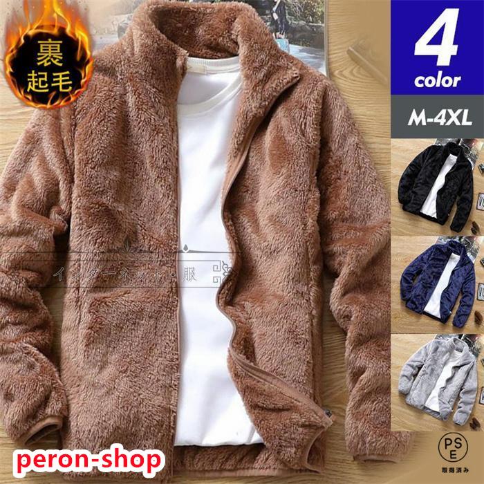 ボアジャケット メンズ フリースジャケット 厚手ジャケット アウター ブルゾン もこもこ 防寒 インナー ゆったり 立ち襟 無地 通勤 通学 おしゃれ