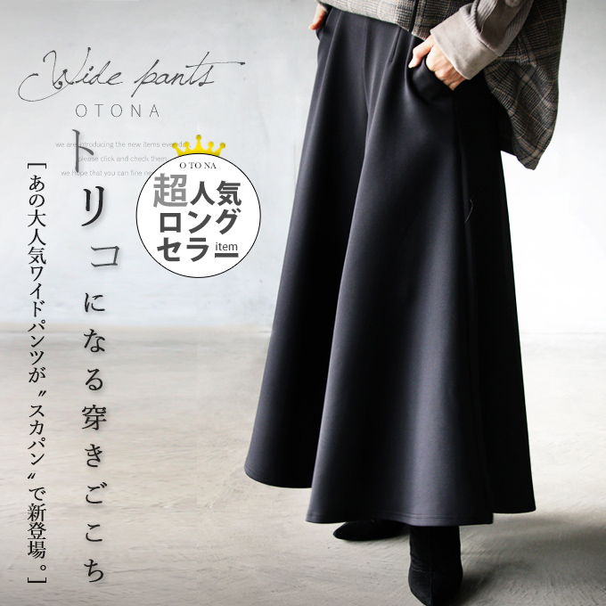 パンツ レディース ブラック ロング ワイド フレア 光沢感 総ゴム ゆったり 体型カバー おしゃれ シンプル トリコになる穿きごこち OTONA 40代 50代 60代