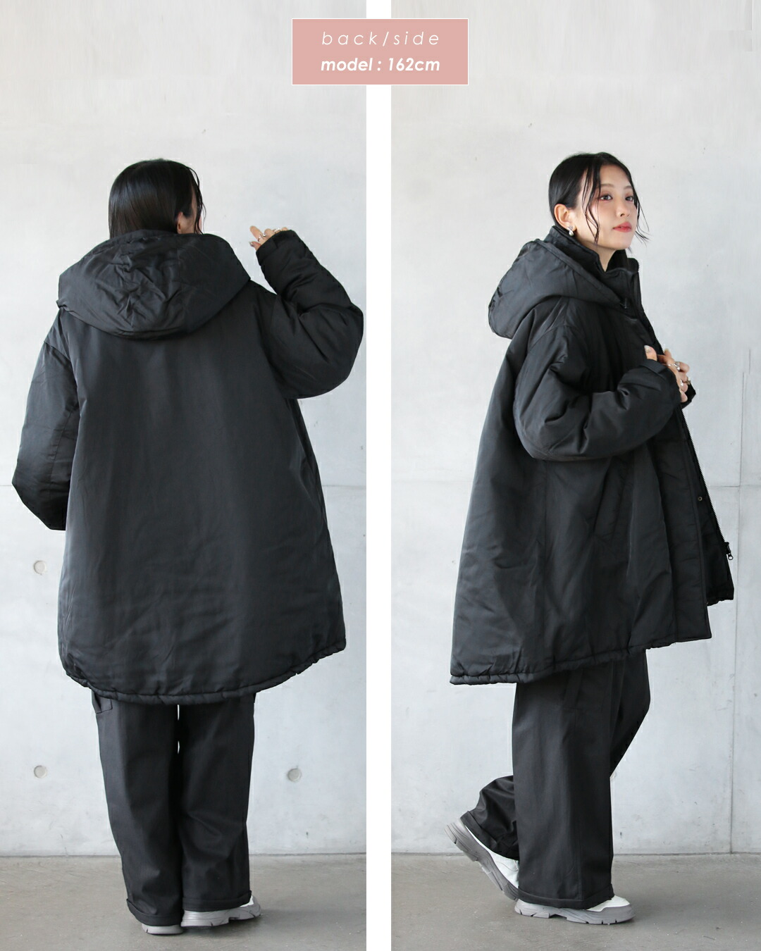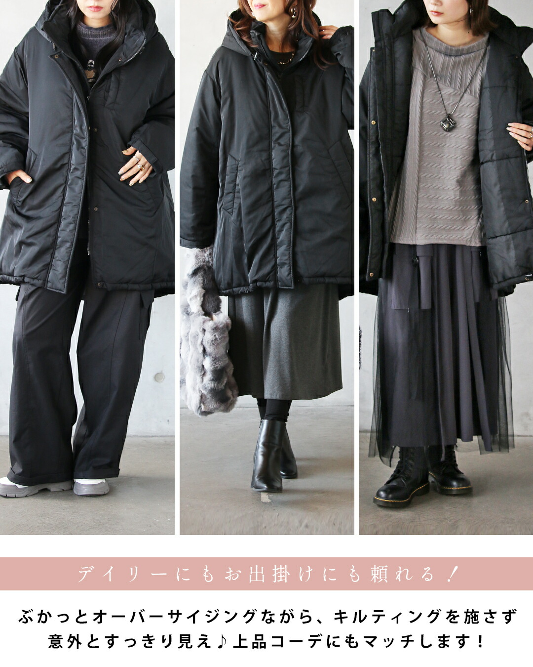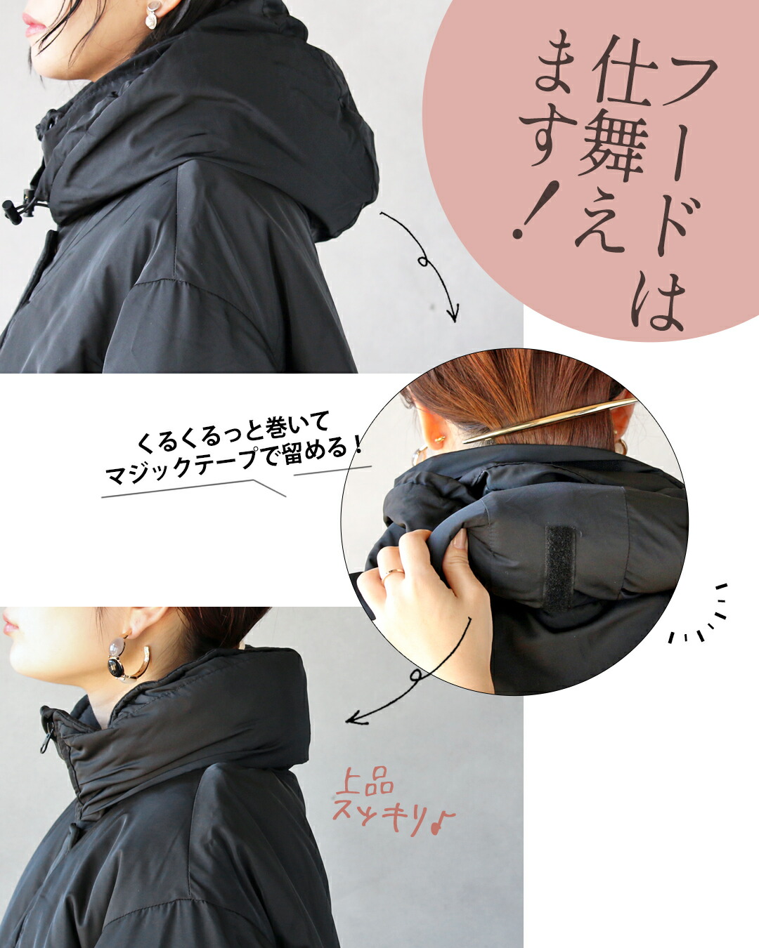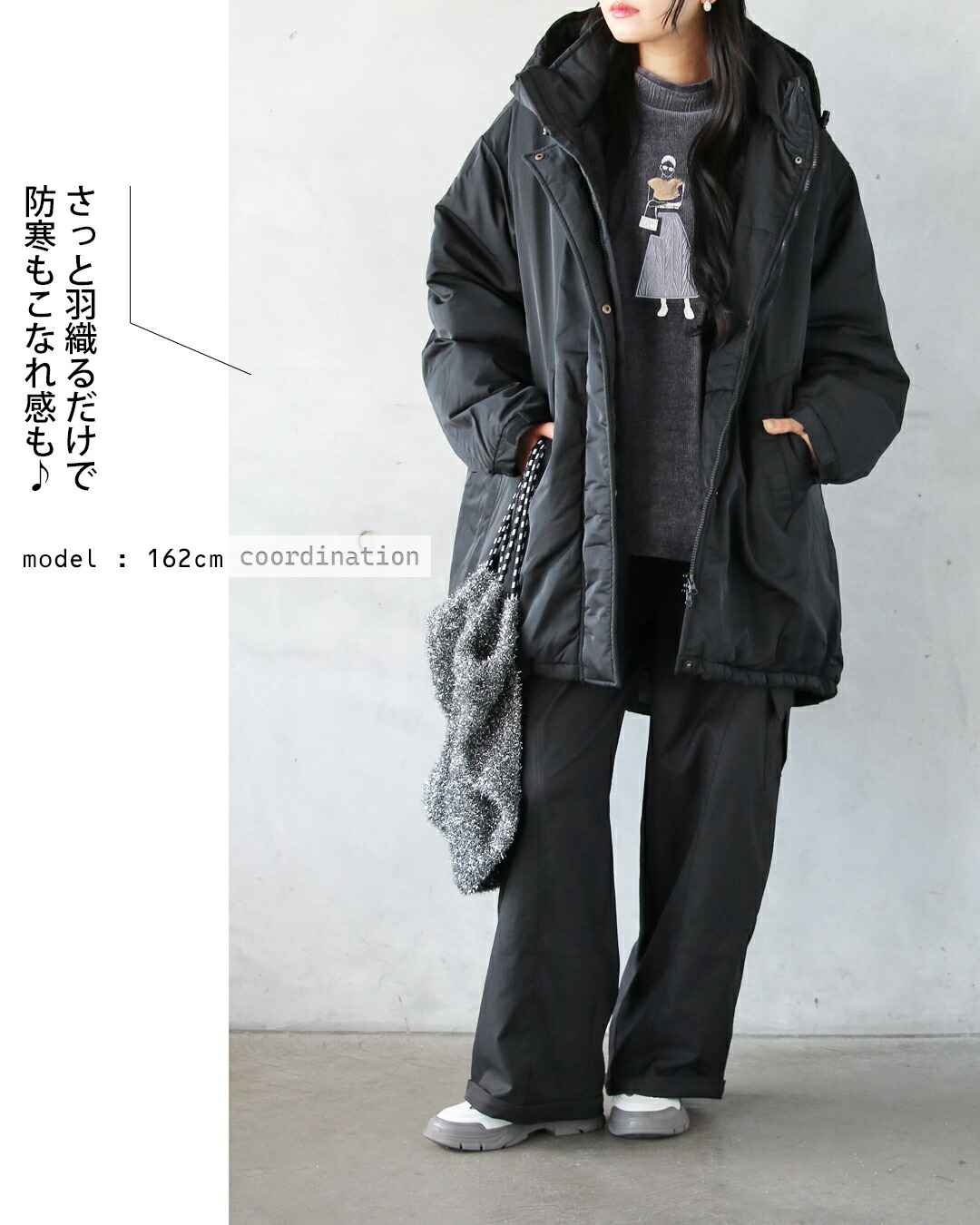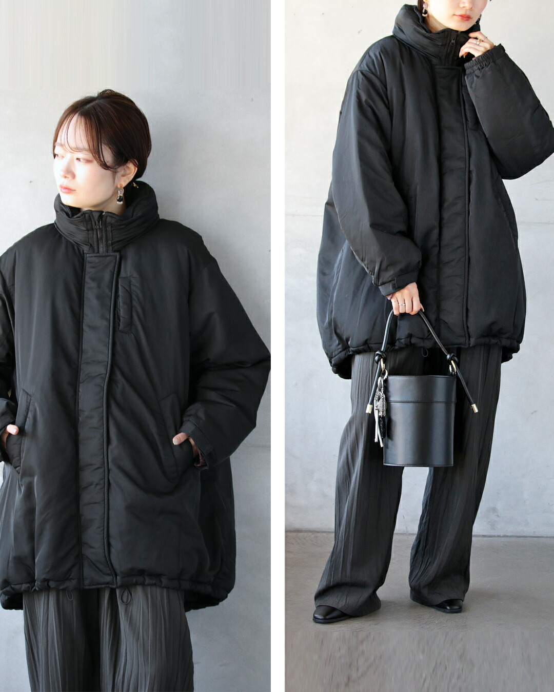 包み込まれるような柔らかなボリュームシルエットが魅力の中綿アウター。ダブルジッパーで使い勝手良く、ボリュームのあるシルエットなのに大人に馴染む上質な抜け感。フードは襟元にすっきり収納できる2WAY仕様で、気分やコーデで表情チェンジ。