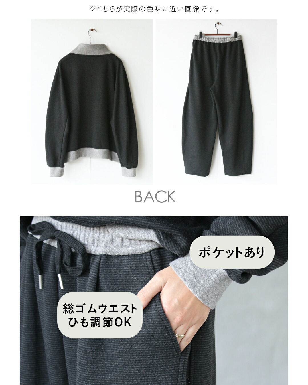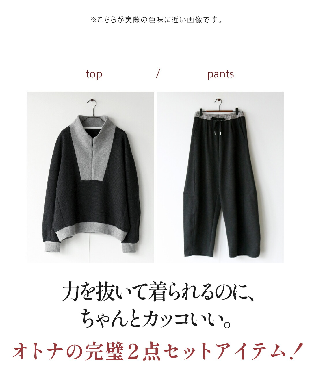 ・トップス/パンツそれぞれ単品使いもでき、着回し力も高め