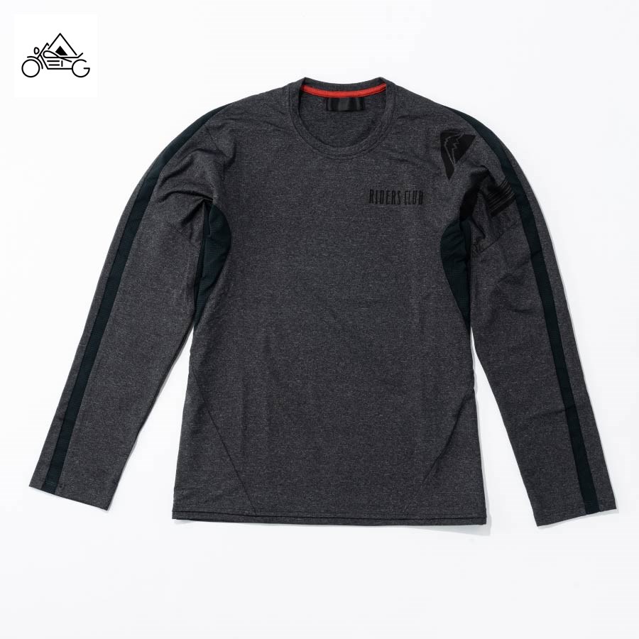 ツーリング先でライディングジャケットを脱ぐ際に、ピタピタの機能インナーだと身体のラインが・・・と躊躇してしまうライダーにおススメの、ややルーズフィットな吸汗速乾ロングTシャツです。