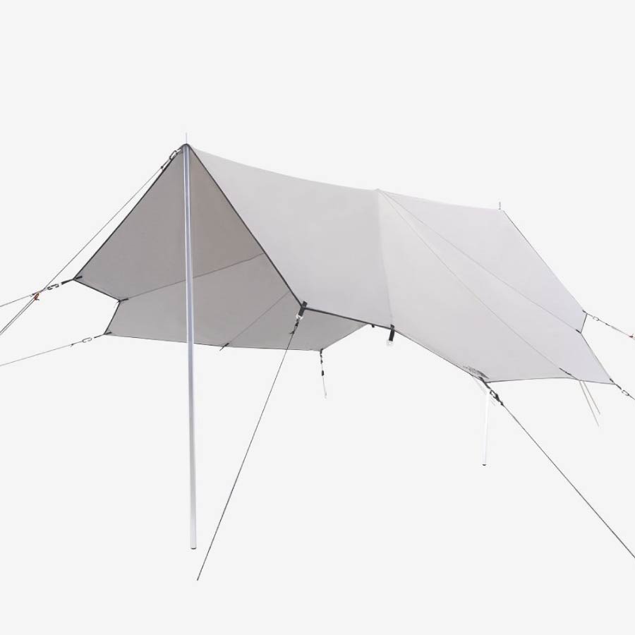 タープの四隅は通常のガイラインまたは三ツ又ガイラインを選択可能。三ツ又ガイラインを使用することでスピーディーな設営が可能です。