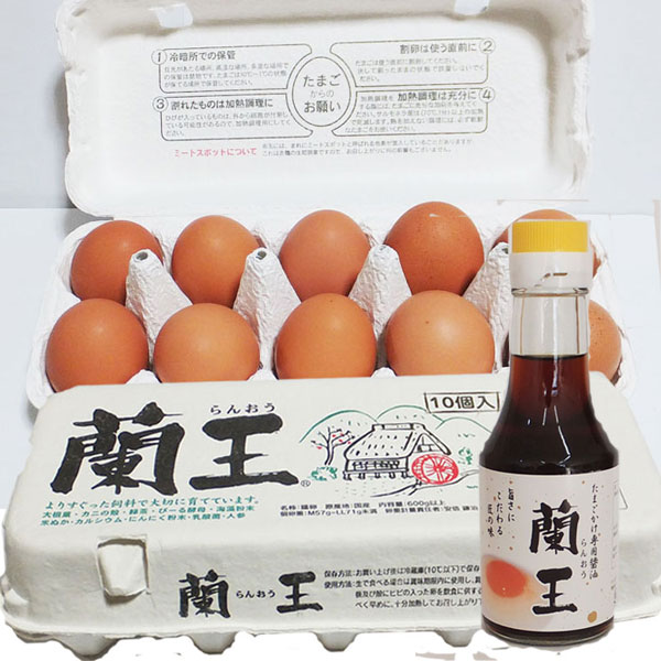 『蘭王』60個と卵かけしょう油のセット(10個入パック×6パックとしょう油1本)