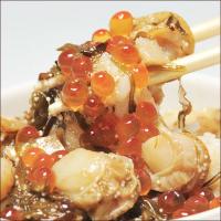 ホタテ、ツブ貝、イクラ、メカブを醤油ベースのタレに漬け込んだ。素材それぞれの旨みが織りなす絶妙なハーモニーがたまらない逸品。そのまま酒のつまみとしてはもちろん、温かいご飯や冷奴にのせて食べるのも◎。