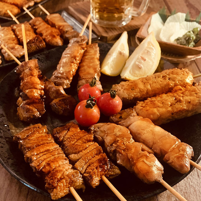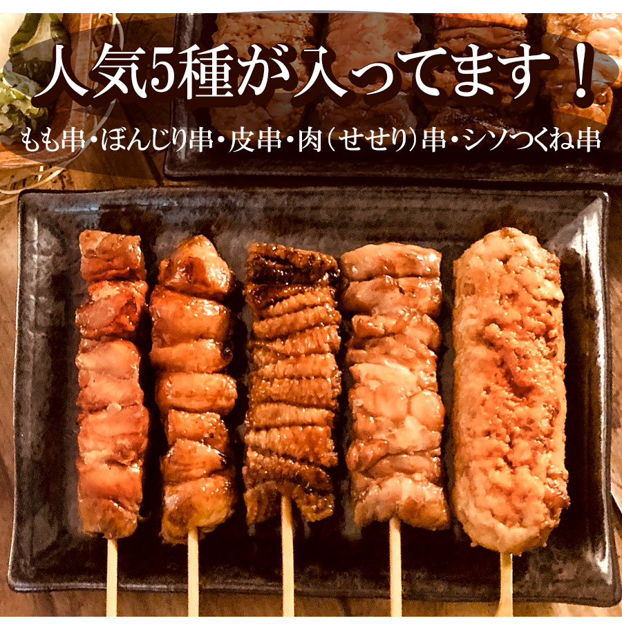 ○内容量:もも串、シソつくね串、小肉(せせり)串、皮串、ぼんじり串 各2本×2パック