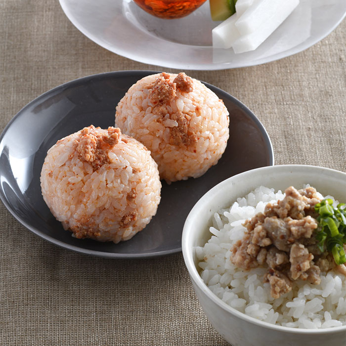 【ガリチキン_明太子味】食用植物油脂(国内製造、大豆を含む)、鶏肉、すけとうだらの卵巣、オリーブオイル、にんにく、赤唐辛子、食塩、ブラックペッパー、風味調味料(昆布粉末、昆布エキス、かつお粉末)/調味料(アミノ酸等)、トレハロース、紅麹色素、甘味料(ソルビット)、酸化防止剤(V.C)、ナイアシン、発色剤(亜硝酸塩Na)、酒精