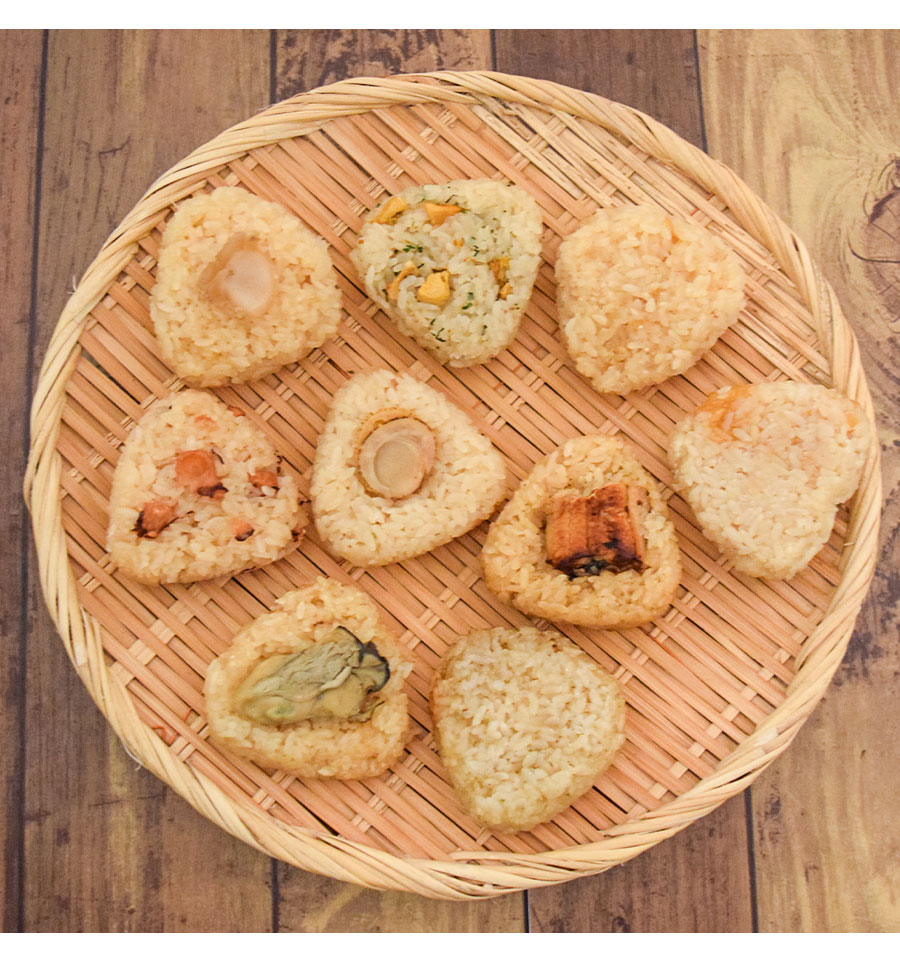 ○内容量:ほたて、たこ、牡蠣、ほや、あわび、えび、うなぎ各1個、だておこわ2個 計9個