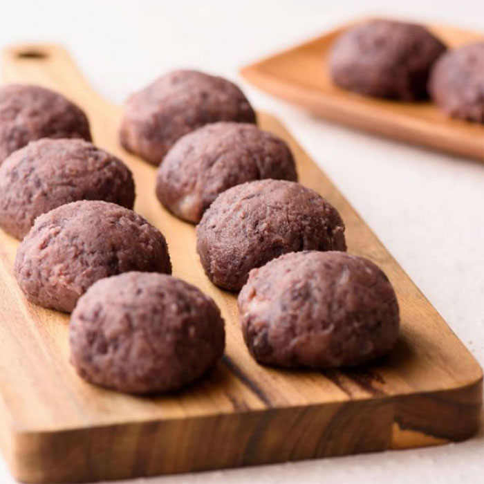 食べたいときに食べたい分だけ自然解凍してお召し上がりいただけるおはぎです。もちはもち米100%。小豆は北海道十勝産の「雅」を使用し、高級和菓子に用いられる白双糖と天然岩塩を隠し味に丁寧に炊いています。今では和菓子屋さんでも加工されたものを仕入れる「あんこ」を自社工場の銅釜で丁寧に炊いております。熱伝導率の良い銅釜を使用することで、きれいな色の風味豊かなあんこに仕上がります。甘さ控えめに作っていますので、2個、3個と手がのびます。アイスやかき氷のトッピングするとさらにおいしくお召し上がりいただけます。石川県では「マリちゃん」として知らない人がいないほど人気の商品です。