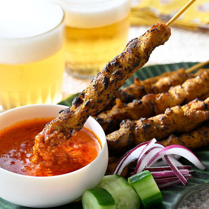 サテーはアジア版の焼鳥。スパイスでマリネした鶏肉の串焼きに、コクのある甘い自家製ピーナッツソースを絡めて食す。多種類のスパイスと、肉の旨みや交錯する複雑な香り、甘やかな味わいは、まさにマレーシア流だ。マレーシア人シェフが作る故郷の味をどうぞ。